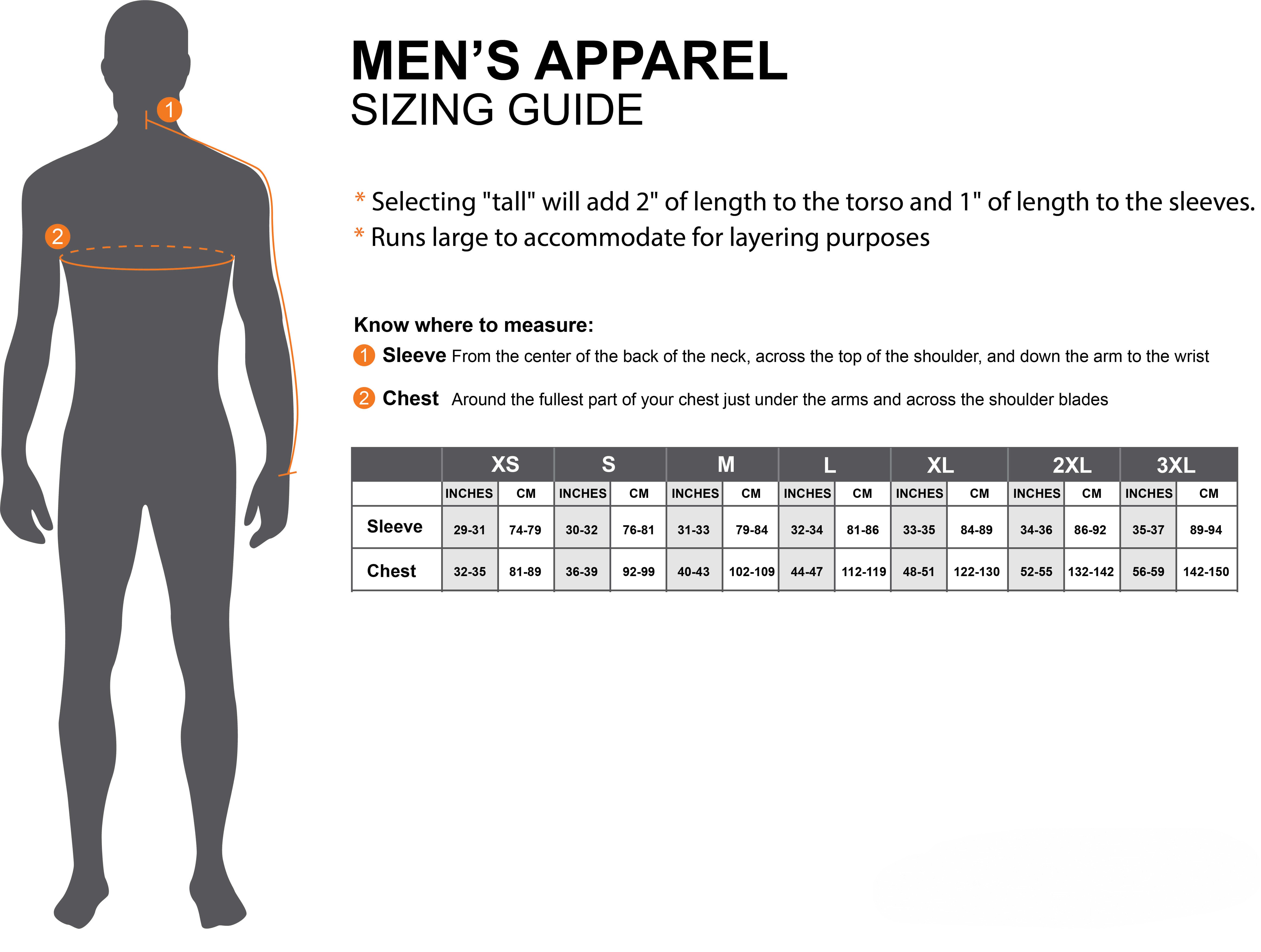 - Raglan style sleeves to increase comfort and range of motion.