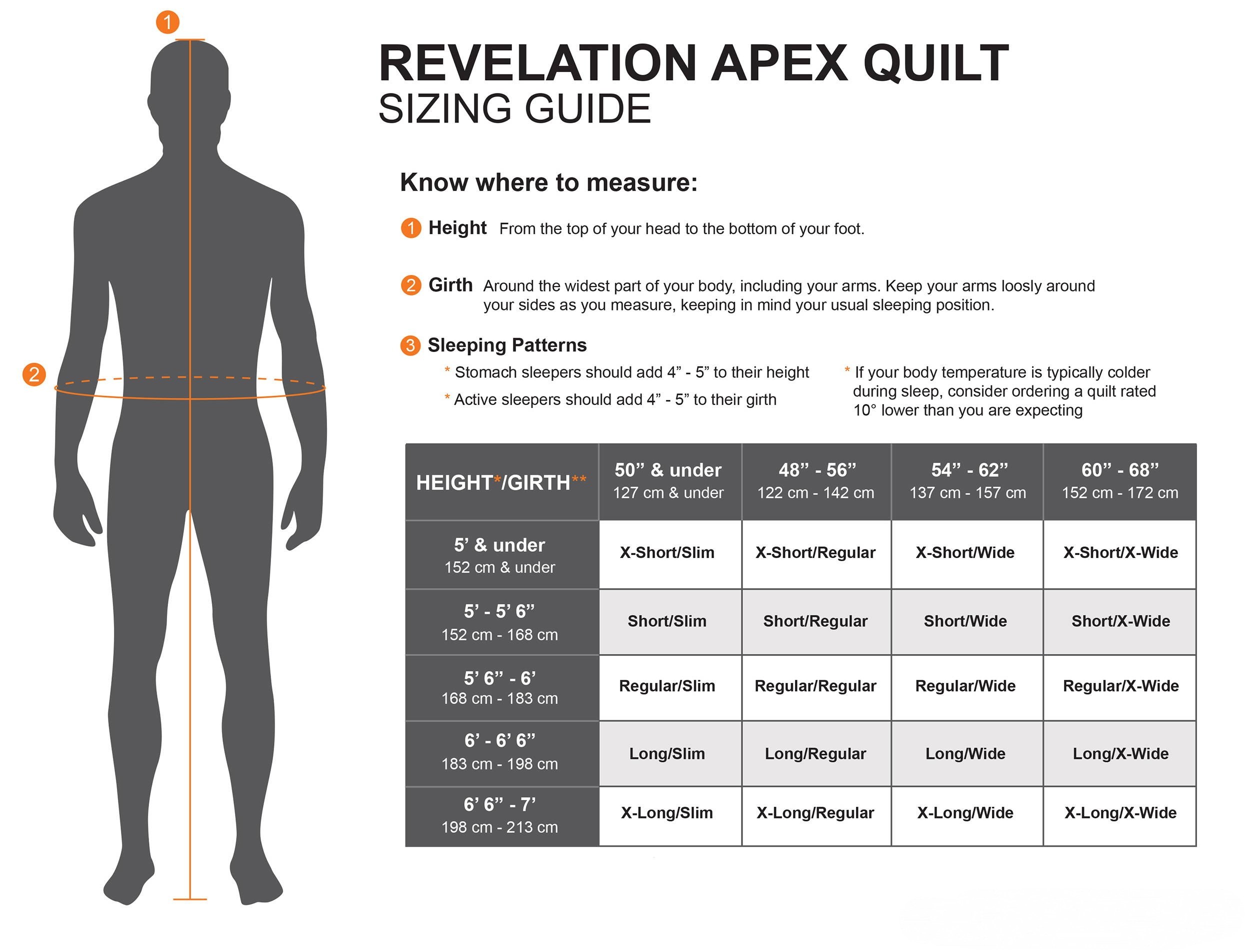 Our original and best selling sleeping quilt, but with APEX Synthetic fill! A favorite of long distance hikers, the Revelation Sleeping Quilt is known for its amazing versatility, thoughtful design, and ultralight weight. On warm nights, the Revelation can lay open as a blanket, and in colder temperatures, you can cinch the adjustable 1/4 length zipper footbox closed. This design allows you to dial in a comfortable night’s sleep in a wide range of different temperatures and climates. The perfection option for active sleepers!