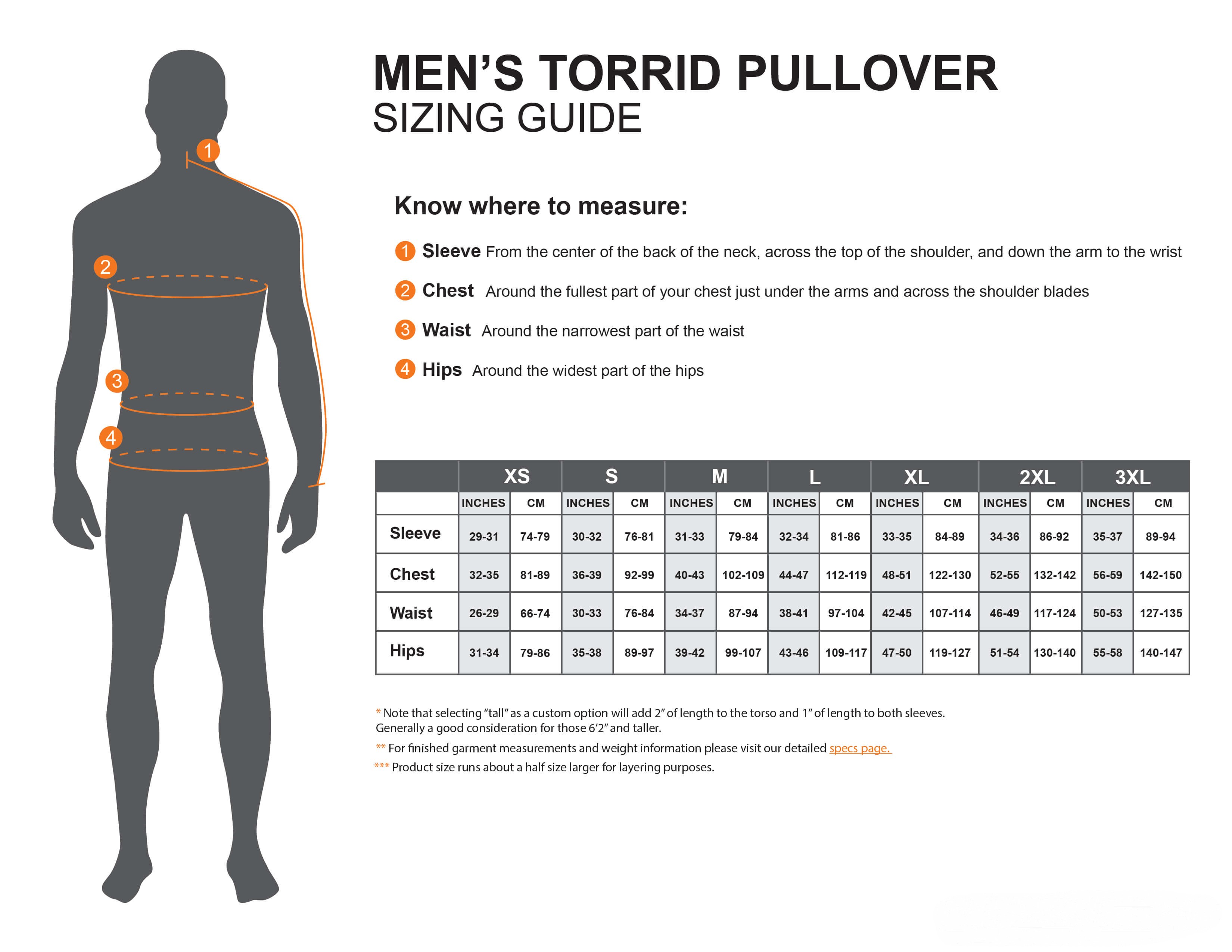 - Selecting Tall for your torso length will add 2" to the torso length, and 1" to each sleeve.